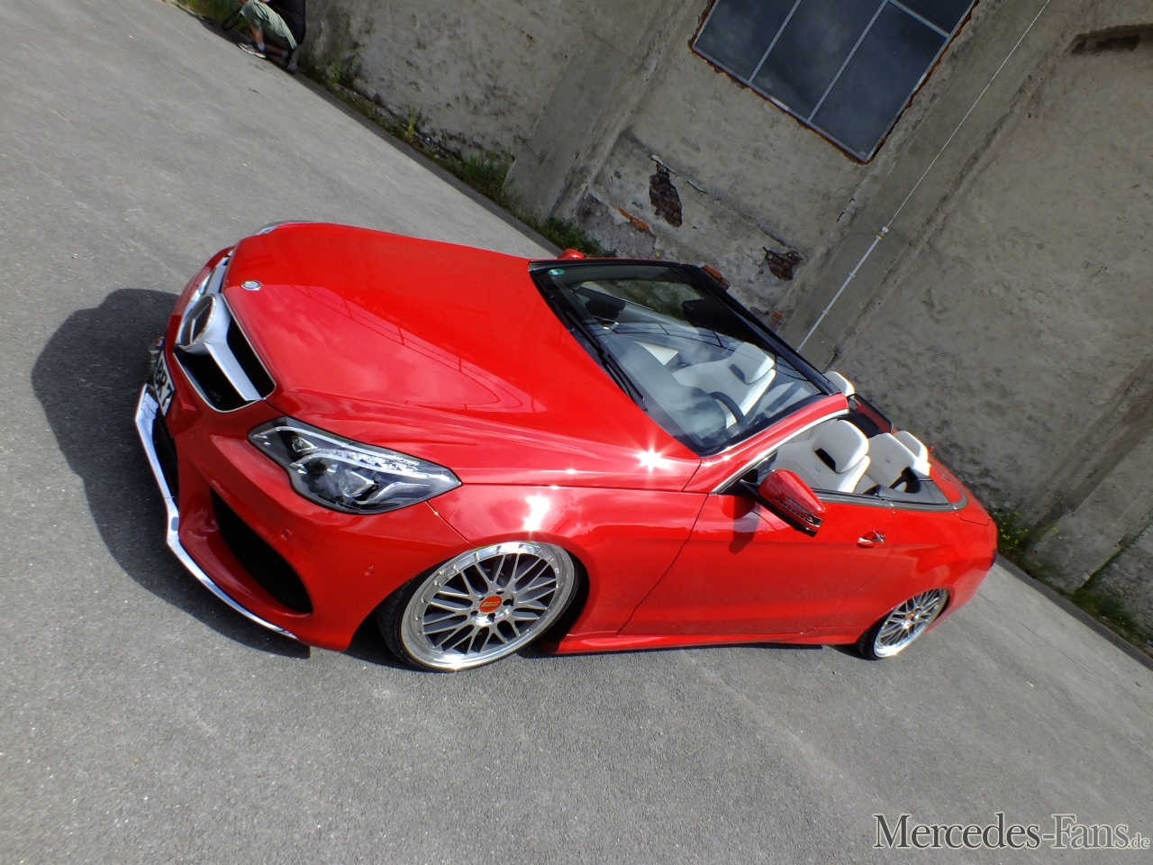 Ein Airride setzt das E-Klasse-Cabriolet dramatisch in Szene
