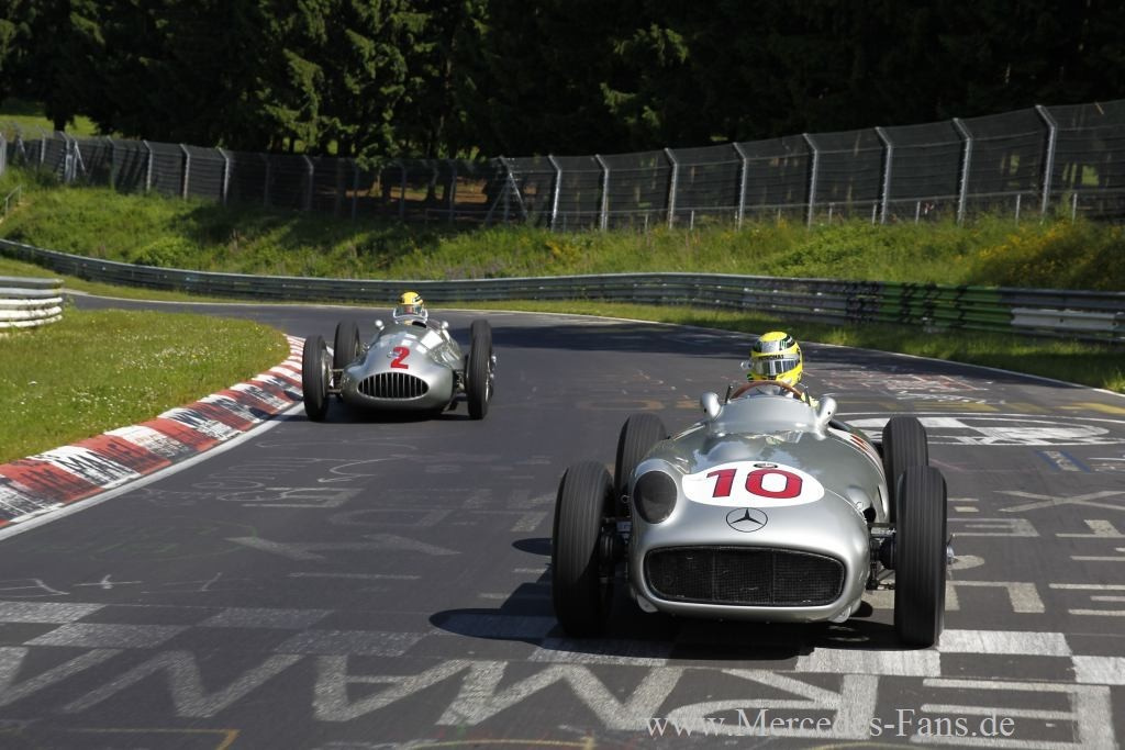 Junge Fahrer - alte Silberfpeile: Rosberg und Hamilton in historischen Silberpfeilen auf Nordschleife