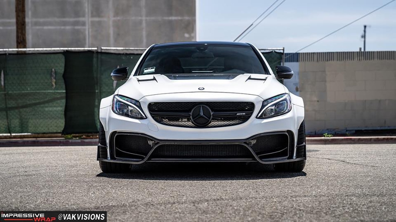 Das perlt schön stark: C63 mit Breitbau-Kit und Folierung in Satin Pearl White