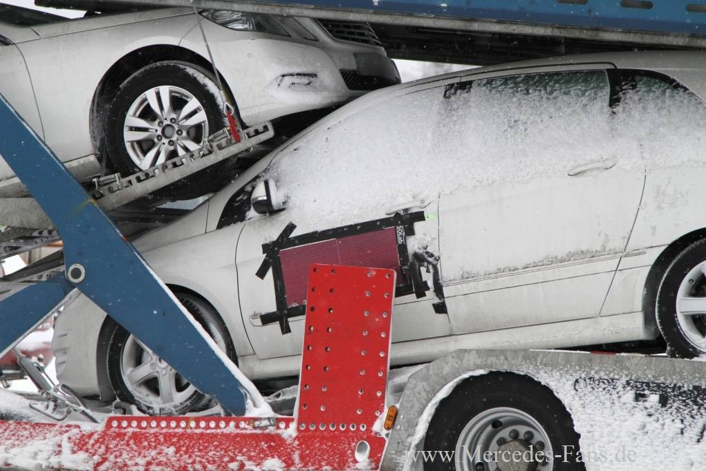 Es passiert hin und wieder, dass Neuentwicklungen eines Automobilherstellers ein kollektives Nachdenken über Sinn und Zweck derselben auslösen. Nun aber hat der Erlkönigjäger von Mercedes-Fans.de eine Entdeckung gemacht, die auf den ersten Blick unerklärlich zu sein scheint. Denn verschiedene Mercedes-Modelle, die ein Mercedes LKW-Prototyp als Autotransporter derzeit durch den hohen Norden Europas chauffiert, waren an der Seite mit Solarzellen verpflastert? An der Seite? Was soll...