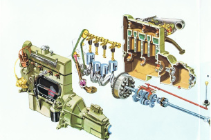In dem Mercedes 190 SL Geburtstagskind von Dipl.-Ing. Thüner ist seit 1999 ein Austauschaggregat für die bewegenden Momente zuständig. Der Originalmotor hatte zu diesem Zeitpunkt seine besten Jahre schon hinter sich. Zeit für die letzte Ölung! Bei der ursprünglichen Maschine wäre eine Generalüberholung aller beweglichen Teile im Motorblock erforderlich gewesen, außerdem gab es Auswaschungen im Zylinderkopf, begründet Friedrich-W. Thüner seine Auswechselungsentscheidung im Maschinenraum.