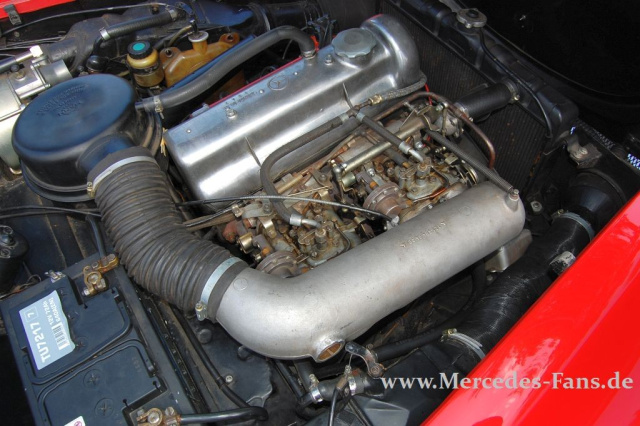 Im allgemeinen gilt ein gut gewarteter Mercedes 190 SL als technisch robuster und alltagstauglicher Klassiker. Gleichwohl hat auch dieses Automobil seine Achillesferse. Ein spezieller Sorgenfall des Mercedes 190 SL sind die beiden Solex Doppelvergaser. In vielen Fällen schlugen die Drosselklappenwellen aus mit dem Ergebnis, dass sich der Motorlauf nicht mehr exakt einstellen ließ und ein Leistungsabfall zu verzeichnen war. Reparaturen sind aufwändig und teuer. Friedrich-W. Thüner kennt noch eine weitere, typische Schwachstelle im Maschinenraum eines Mercedes 190 SL: Das erhebliche Gewicht, welches die Solex-Vergaser zusammen mit dem Luftsammler aufweisen, hat ein problematisches Schwingungsverhalten zur Folge. Letzteres führt an den motorseitigen Flanschverbindungen immer wieder zu Undichtigkeiten mit Falschlufteintritt, erklärt er. Die eigentliche Ursache des Übels liegt in dem Umstand, dass die Kurbelwelle im W121 BII nur 3-fach gelagert ist. Eine 5-fach gelagerte Welle, wie ihn zum Beispiel eine 200er Heckflosse hat, wäre wegen seine wesentlich besseren Schwingungseigenschaften vorteilhafter, weiß der Dipl.-Ingenieur.