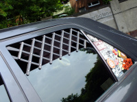Stahlfelgen (15 Zoll mit Hankook-Reifen in der Dimension 195/65) sowie diverse Aufkleber in kleiner und größerer Form fügen sich stimmig in die ungewöhnliche Inszenierung.