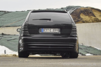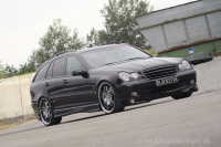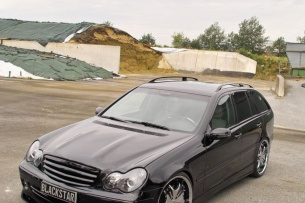 Die Abgase werden über einen Eisenmann-Mittelschalldämpfer und den Magnaflow-Endschalldämfer sonor abgeleitet. Gleichsam zum powervollen C 230 avanciert, hält eine AMG-Bremsanlage mit gelochten innenbelüfteten Zimmermann-Bremsscheiben die Kräfte des erstarkten T-Modells zuverlässig im Zaum.