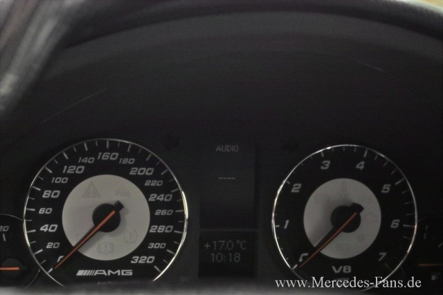 AMG-Parts impfen den Innenraum mit einer zünftigen Dosis Sport. Dem Veredelungsprogramm entstammen: Fußmatten, Sportlenkrad, Pedale (Sportpaket), Tacho (C55 AMG, Mopf-Version) und beleuchtete Einstiegsleisten.