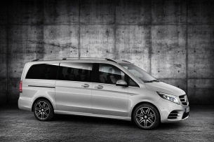 Das AMG Styling betont deutlich die dynamische Präsenz der V-Klasse. Markante Designparts mit Lufteinlässen – darunter auch eine Heckschürze in Diffusoroptik - unterstreichen kraftvollen Auftritt der Stuttgarter Großraumlimousine. Zur Abrundung der sportlichen Optik kommt die V-Klasse AMG-Line mit 9-Zoll-Leichtmetallräder im Sieben-Doppelspeichen-Design ins Rollen. Ferner ist die V-Klasse AMG Line mit einer respektabel anmutenden und fest zupackender 17-Zoll-Bremsanlage und einem straffer abgestimmten Sportfahrwerk mit 15-mm-Tieferlegung ausgerüstet. Für die V-Klasse AMG Line ist das AGILITY CONTROL Fahrwerk optional verfügbar.