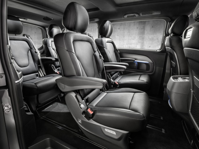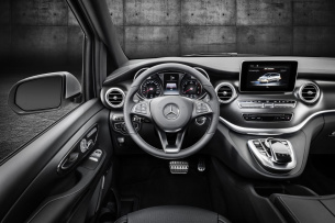 Um den Komfort in der V-Klasse zu steigern, bietet Mercedes-Benz ab September auf Wunsch eine Sitzklimatisierung im Fond an. Ab Ende des Jahres können das Panorama-Dach, die große Mittelkonsole und die iPad-Halterungen als optionales Zubehör geordert werden. Ein erhebliches Komfortplus stellten des Weiteren die iPad-Halterungen an den Rückenlehnen der Vordersitze sowie die große Mittelkonsole mit gepolsterter Armauflage und integriertem Kühlfach in Aussicht. Sie hat den Insassen Ablagefächer, zwei Cupholder vorne, zwei LED-beleuchtete Thermo-Cupholder für die Fondpassagiere und eine 5-Liter-Kühlbox anzubieten. Ferner ist die große Mittelkonsole USB-Anschlüssen, einem SD-Kartenslot sowie einer 220-Volt- und einer 12V-Steckdose ausgestattet.