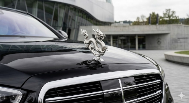 Die Automobilwelt hält den Atem an: Mercedes-Benz hat heute Morgen in einer Pressekonferenz bekannt gegeben, dass der weltberühmte Mercedes-Stern, der seit über 110 Jahren die Kühlerhauben der Stuttgarter Premium-Fahrzeuge ziert, ab sofort der Vergangenheit angehört. An seine Stelle tritt ein kunstvoll gestalteter chinesischer Drache, im Mandarin „Lóng“ genannt.