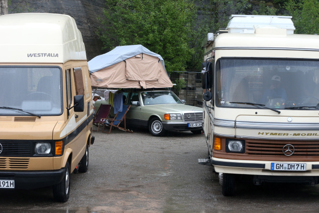 Stichwort Camper: Zum ersten Mal ein Teil von SCHÖNE STERNE war die Creative Camper Challenge. Die zehn ausgewählten Fahrzeuge gaben einen interessanten Einblick in die unterschiedlichen Campingtrends. Da war der klassische, vollintegrierte Hymer, ein zum Expeditionsfahrzeug umgebauter Ex-Feuerwehr-Benz, es fehlte auch nicht an hochgelegten Sprinter-Campern mit Allradantrieb und dann gab es dann noch einen ganz besonderen Teilnehmer. Mit dem zum Wohnmobil umgebauten S212 will der Besitzer die Rekordmarke "Schnellstes Wohnmobil der Welt" von Großbritannien wieder nach Deutschland zurückholen. Sein E 500 T-Modell verfügt über Bett und Küche und ist als Wohnmobil vom TÜV anerkannt und zugelassen.