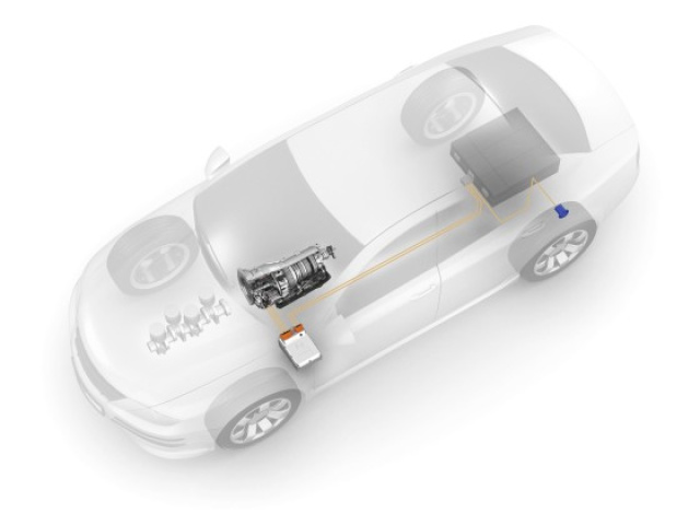 Bei den parallelen Systemen arbeitet ein Elektromotor räumlich unabhängig vom Verbrenner. Hier hat ZF einen Achshybrid für frontgetriebene Fahrzeuge entwickelt. Die Hinterachse des Fahrzeugs ist mit einem elektrischen Achsantriebssystem ausgestattet. Beide Antriebe sind vernetzt und kommunizieren miteinander. Die Elektrifizierung ermöglicht Hybridfunktionen wie Boosten und Rekuperieren sowie ein Schalten ohne Zugkraftunterbrechung durch die Unterstützung des E-Motors. Auf Knopfdruck entsteht ein dauerhafter Allradantrieb oder ein rein elektrischer Vortrieb.