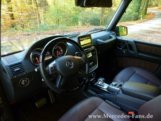 Ohne Zweifel: AMG hat viel dafür getan, den G zu verfeinern. Und man kommt nicht umhin zuzugeben, dass mehr Klasse und Rasse aus diesem Quader mit vertretbaren Mitteln wohl kaum noch rauszuholen ist. Elegante designo-Ledermaterialien oder Hölzer werten den Innenraum auf. Die Geräuschdämmung ist perfekt. Selbst die Windgeräusche sind für eine scharfkantige Form wie diese überraschend leise.