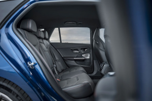 Ganz so gut schlägt sich der Mercedes-AMG C 63 S E Performance T-Modell auf der Landstraße nicht immer. Im Automatikmodus sortiert sich das Getriebe manchmal, ehe es den passenden Gang einlegt, begleitet von einem leichten Ruckeln. Der Vierzylindermotor kann seine Herkunft weniger kaschieren und dreht beim progressiven Abrufen der Leistung hörbar hoch. Das Fahrwerk ist aufgrund des Gewichtes von 2.190 Kilogramm und des AMG-Selbstverständnisses eher straff, aber nie gänzlich unkomfortabel ausgelegt. Bei der Lenkung haben die AMG-Ingenieure spürbar nachgebessert. Die Steuerung ist nun präziser, gibt mehr Rückmeldung und versucht nicht mit großen Rückstellkräften Sportlichkeit vorzugaukeln. Nach der Testfahrt, die uns durch Berge mit vielen Kurven führte, meldete der Bordcomputer einen Verbrauch von 10,3 l/100 km beziehungsweise 0,7 kWh/100 km.